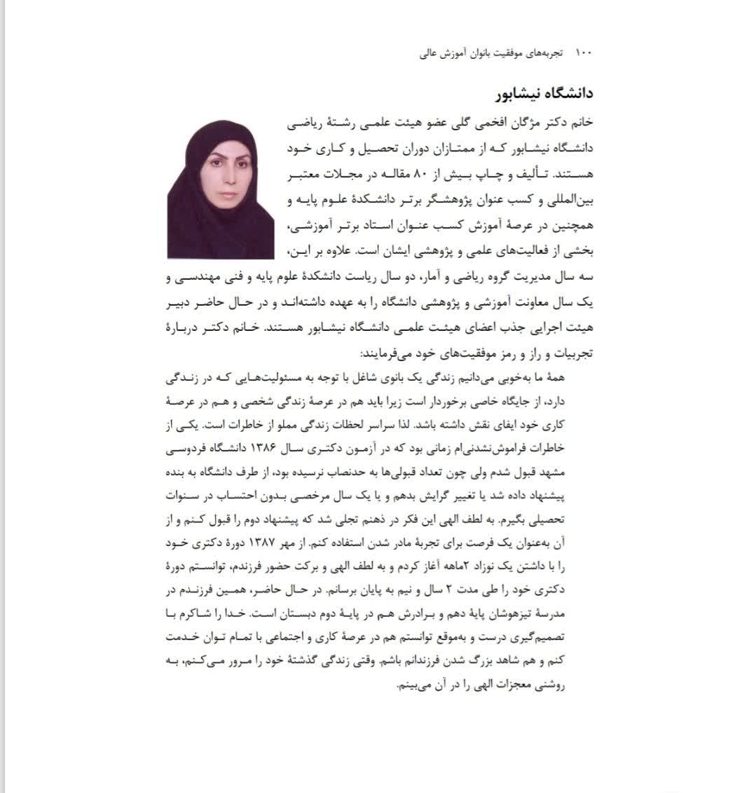 تجربه های موفق بانوان آموزش عالی- دانشگاه نیشابور