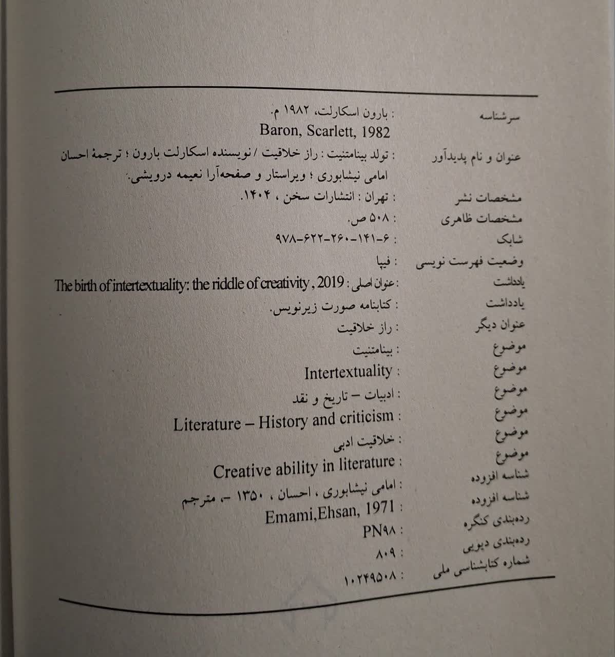 این کتاب، خاستگاه بینامتنیت را نخست در نظریه تکامل داروین میجوید که بر «شبکهای از روابط پیچیده» میان تمام موجودات تأکید داشت. سپس بذرهای آن را در اندیشه نیچه میکاود که پیوندی گسستناپذیر میان همه پدیدههای جهان قائل بود. این کتاب همچنین فروید را قهرمانی بیچونوچرا در تبارشناسی بینامتنیت میداند؛ کسی که ارتباط رویاها را با داستانهای ادبی تصادفی نمیدانست و معتقد بود «ارتباطات میان رؤیاهای معمول ما و داستانهای خیالی و مطالب سایر انواعِ نوشتارِ خلاق، کم و تصادفی نیستند». در ادامه، باختین طلایهدار این نظریه است که میگوید: «نیمی از هر کلمه در زبان به شخص دیگری تعلق دارد.» نویسنده در این کتاب، برای ترسیم نقشه کامل این مفهوم، از مرزهای علم، فلسفه، زبانشناسی، روانشناسی، ادبیات و نقد ادبی فراتر میرود و با بازخوانی آرای اندیشمندانی چون اسپنسر، برگسون، تاین، الیوت، فرای، فوکو، بارت، سوسور، لاکان، دریدا و بلوم، میکوشد مفاهیم بنیادین بینامتنیت را در فضای فکری امروز بازتعریف کند و ابهامات موجود را بزداید.
