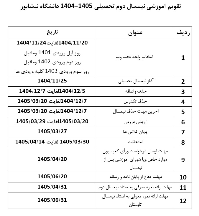 اصلاحیه تقویم آموزشی سال تحصیلی ۱۴۰۵-۱۴۰۴