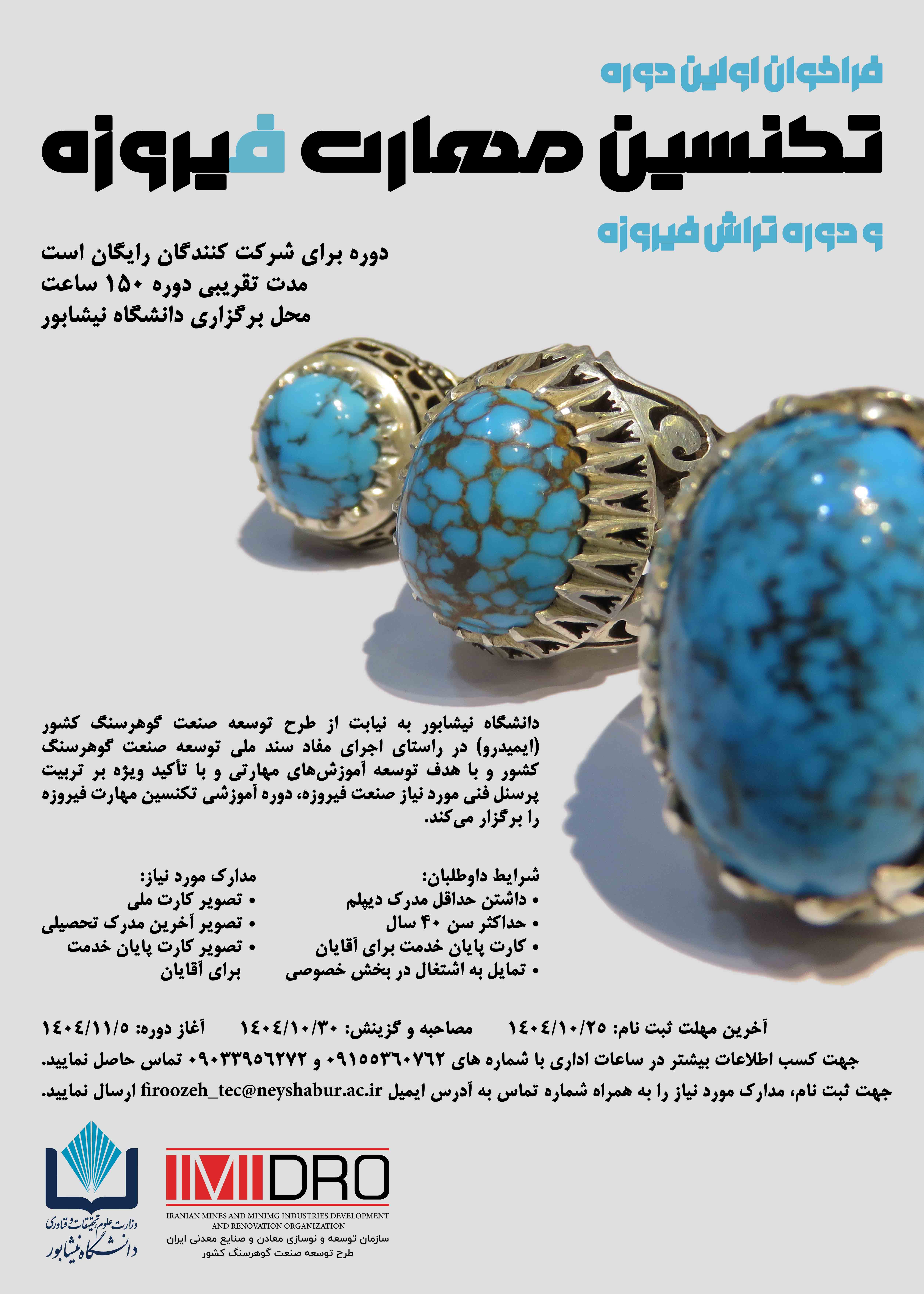 فراخوان اولین دوره تکنسین مهارت فیروزه و تراش فیروزه